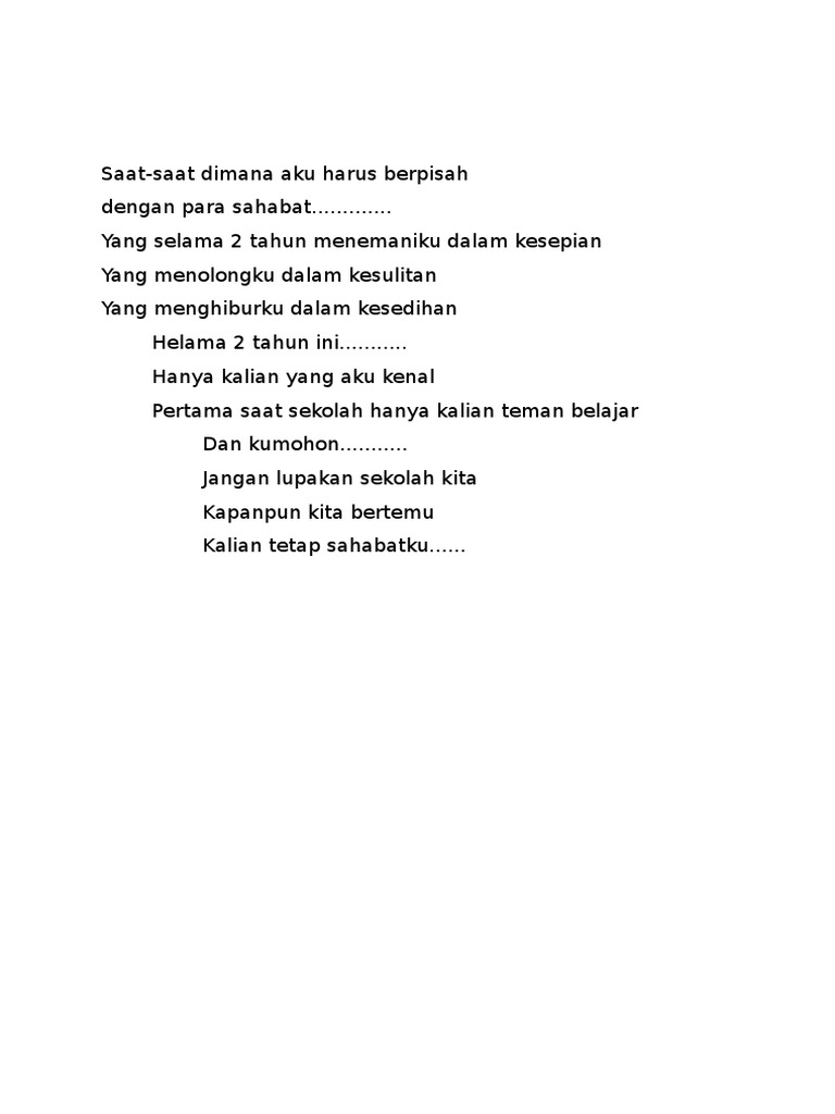 Puisi perpisahan sekolah smp kelas 9. CachedSimilarShareView shared postTranslate this pageJan 29 2013 Puisi Untuk Perpisahan Kelas 9. Dalam hidup pasti ada pertemuan dan perpisahan.
