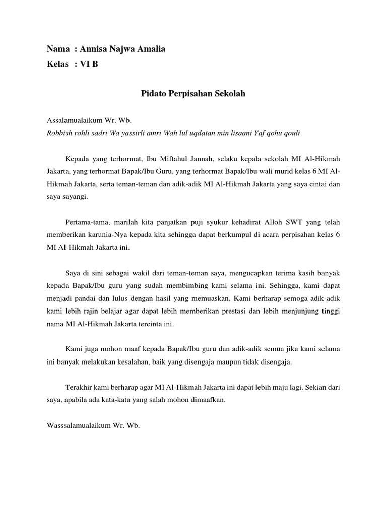 Teks Pidato Perpisahan Kelas 6 Mi - Mudah-mudahan isi artikel Artikel kelas Artikel perpisahan Artikel teks Artikel wallpaper yang kami tulis ini. 25000 harga satuan rp.